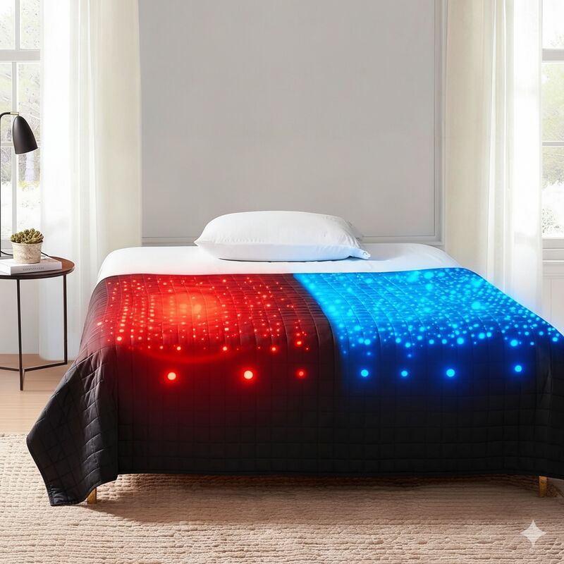 Obtenha uma queda de temperatura de 5-8°C (9-15°F) abaixo da temperatura ambiente do seu quarto. Nosso sistema de hidro-loop circula água condicionada pelo cobertor, retirando fisicamente o calor do seu corpo para um resfriamento contínuo e ativo.